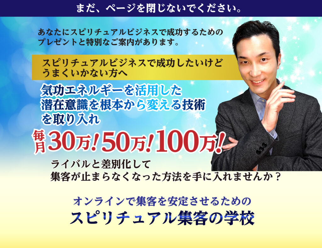 だからこそ、今回お伝えしている「気功エネルギーを使いスピリチュアルビジネスで成功する方法」をいち早く取り入れてもらいたいと思います。